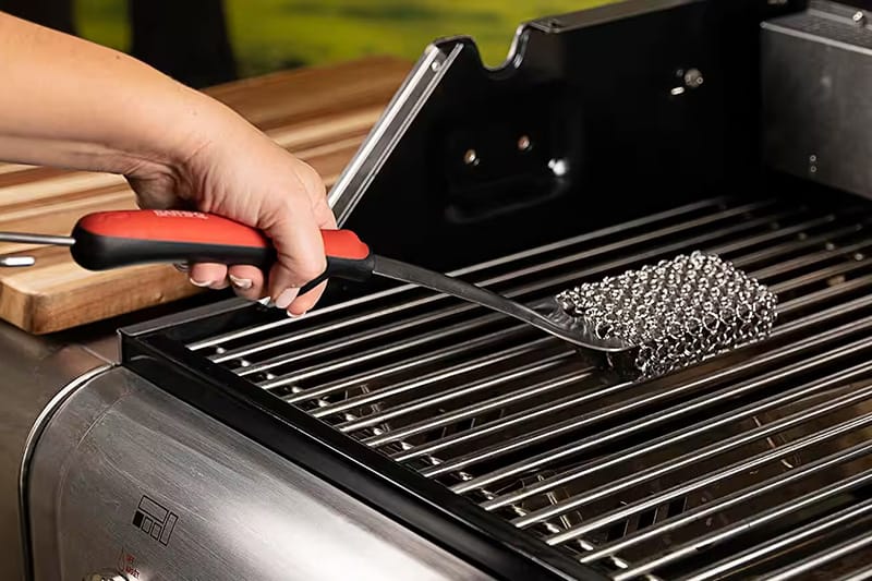 - Udržujte gril čistý Keď je rošt je horúci, vyčistite ho kefkou z nehrdzavejúcej ocele . Tento krok slúži nielen na zaistenie čistoty. Tiež zabraňuje prilepeniu jedla. Ak sa na roštoch alebo kefe nachádzajú uvoľnené štetiny, vymeňte kefu.